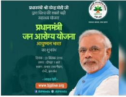 - 23 सितंबर, 2018 को प्रधानमंत्री नरेंद्र मोदी ने स्वास्थ्य बीमा योजना-प्रधानमंत्री जन आरोग्य योजना (आयुष्मान भारत) का शुभारंभ रांची, झारखंड में किया।